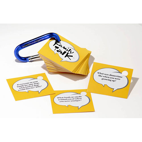 Family Talk, the award winning portable conversation game is perfect for today's busy families. Just pick a card, ask a question and get a glimpse into the hearts and minds of family members you thought you really knew! No need to schedule game night as this game can be played anywhere at any time! Family Talk allows you to take the dinner table conversations with you wherever you go! Even gets teens talking! Perfect gift for just about anyone on your list! 100 questions. GAME OF THE YEAR by Creative Child Magazine 2009 for conversation games.
