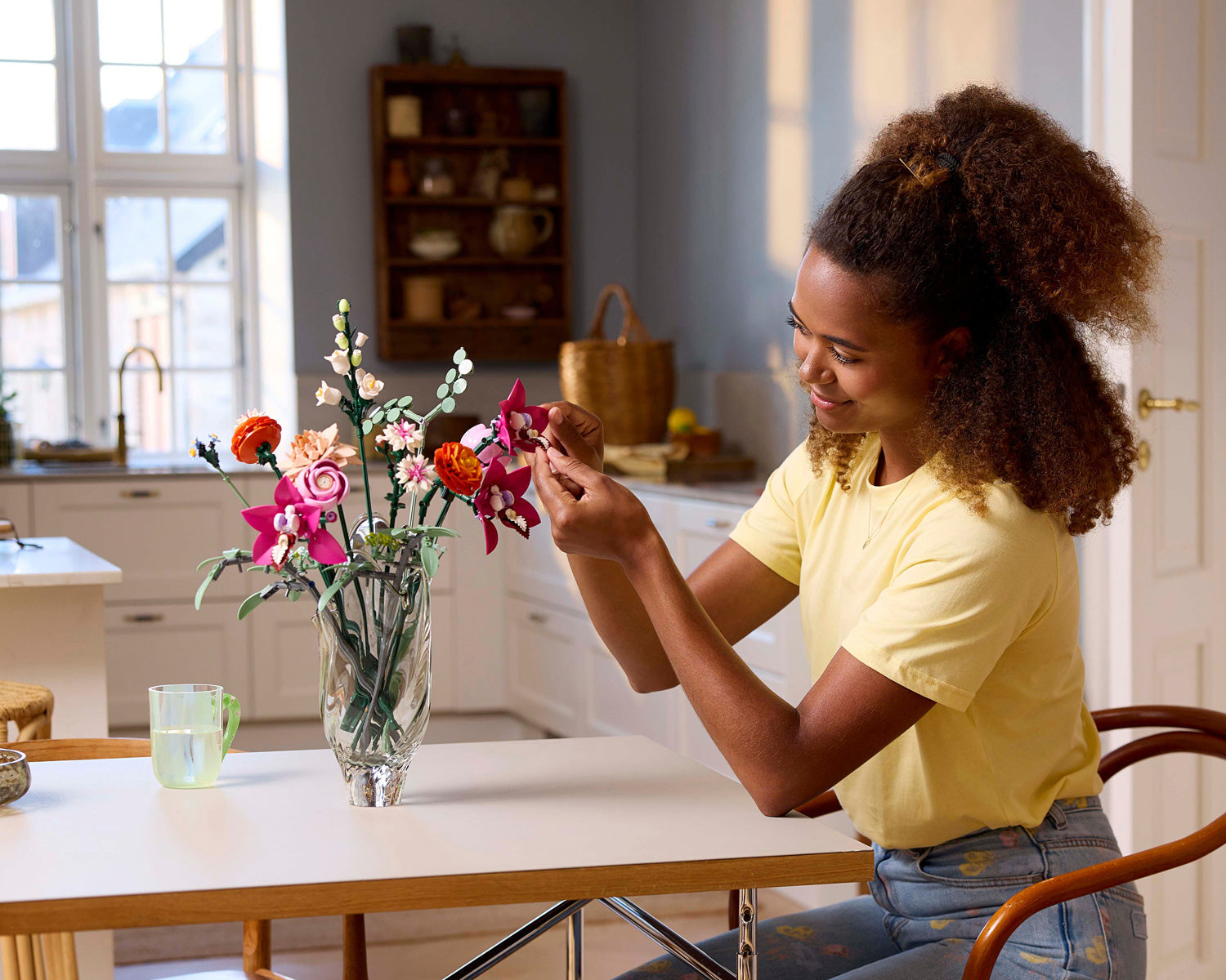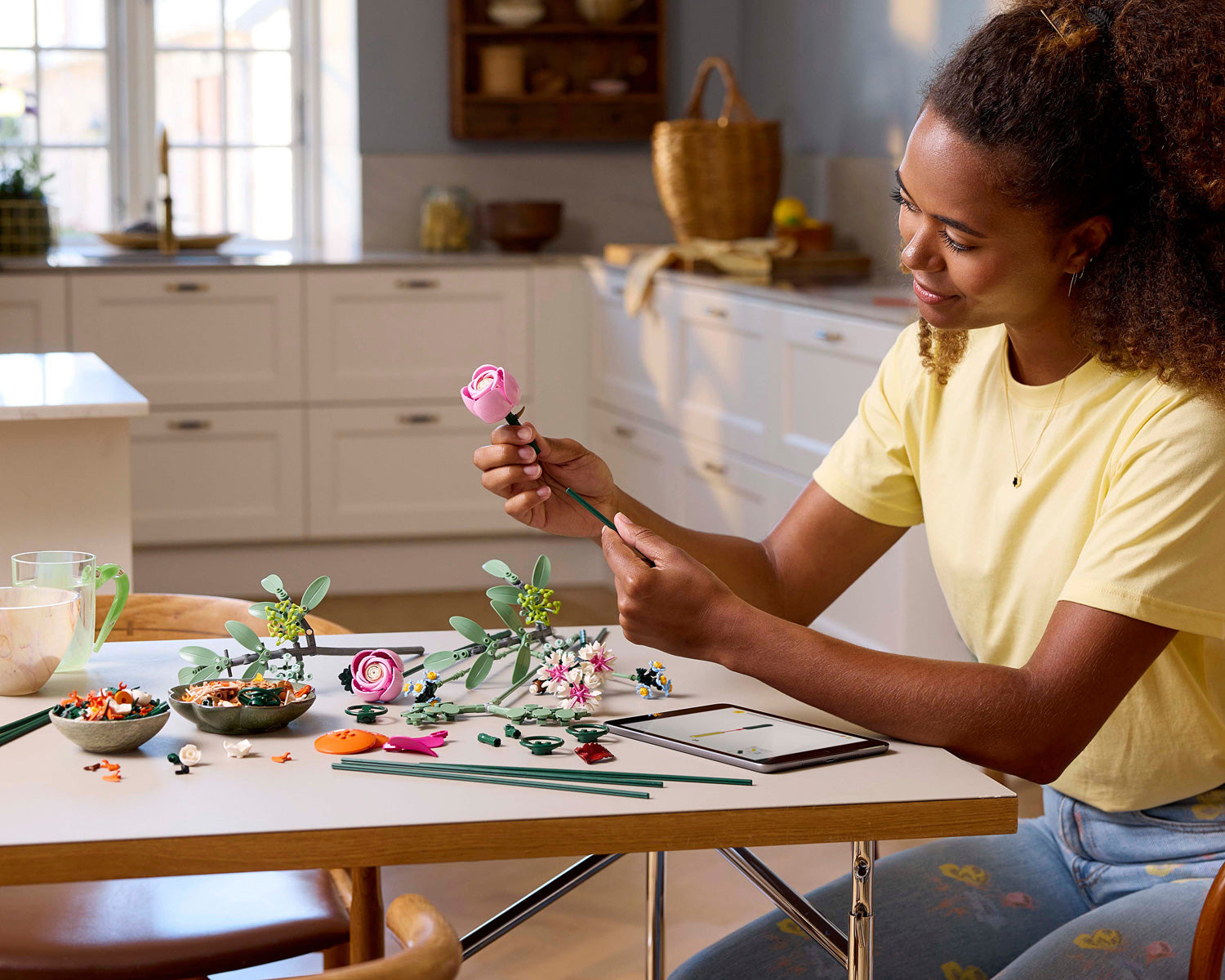 Let creativity blossom and enjoy a relaxing building experience assembling a gorgeous LEGO flower bouquet. This unique gift for adult fans of LEGO allows them to channel their inner florist as they build 15 flower stems from 749 pieces, including daisies, cornflowers, eucalyptus, elderflowers, roses, ranunculus, cymbidium orchids, waterlily dahlia, campanula and greenery with adjustable stems. Proudly display the finished bouquet in a vase (not included) to brighten any room or office!