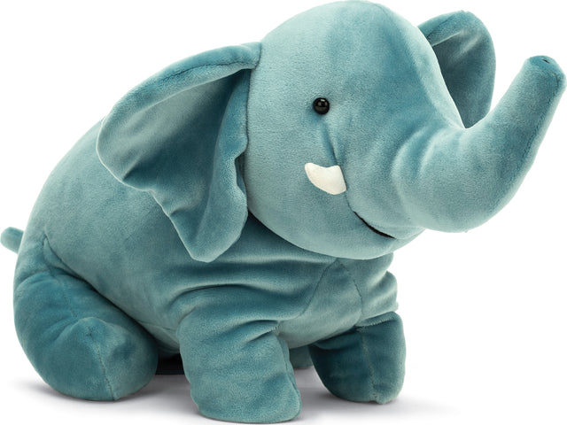 Mellow Mallow Elly is terrific in turquoise, with baby-soft fur and a warm silly smile. This squishable sweetie has a quirky, perky trunk, soft suedey tusks and flappity ears. A gift for the newest member of the herd!