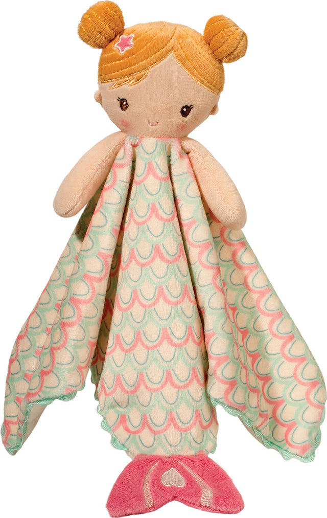 Douglas Co., Inc. - Bring the song of the sea home to you and your baby with our Playful Little Mermaid plush snuggler! Our darling mermaid character is ultra soft and created with the finest fabrics available. Her cuddly blanket body features a fish scale scallop pattern and gentle pastel colors of green and pink with a silky scalloped border around the snuggler's edge. Embroidered facial details and soft, pink airbrushing create her sweet expression and additional embroidered accents bring further charm to our mermaid. Like all of Douglas's Cuddle Baby products, our Playful Little Mermaid collection features an assortment of other accessories featuring this character so she can be enjoyed on her own or matched with coordinating Mermaid toys!