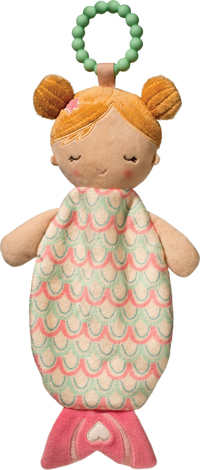 Douglas Co., Inc. - Drift away on a peaceful sea with our Playful Little Mermaid Teether. Featuring a pastel green teething ring made of safe 100% silicone, this mermaid soft toy is here to soothe Baby. Featuring gentle green and pink fish scale scallop pattern over her body and made from only the softest luxury fabrics our darling mermaid is designed to become your Baby's best friend. Additional details include soft pink airbrushed cheeks and embroidered embellishments. More fun can be had with this appealing character with additional accessories on our Playful Little Mermaid collection. Pick and choose your favorites to build a coordinated set to give as a gift or keep for your baby.