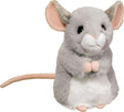 Oh, what Monty the plush Mouse would give for a piece of fresh cheese! From Gouda to Brie, this endearing critter loves all kinds of cheeses! Monty sits up as politely as he's able and holds his tiny, pink paws together in an appealing gesture he hopes will work. Will you give in to the charms of this little stuffed animal? After gazing into his large, dark eyed expression, it's hard to say no! Crafted in cuddly gray and white plush materials, Monty's appearance is accented with a lifelike pink tail, paws, and ears. Stitched details create a winsome smile that will surely earn this little plush Mouse a bite of your cheese sandwich!