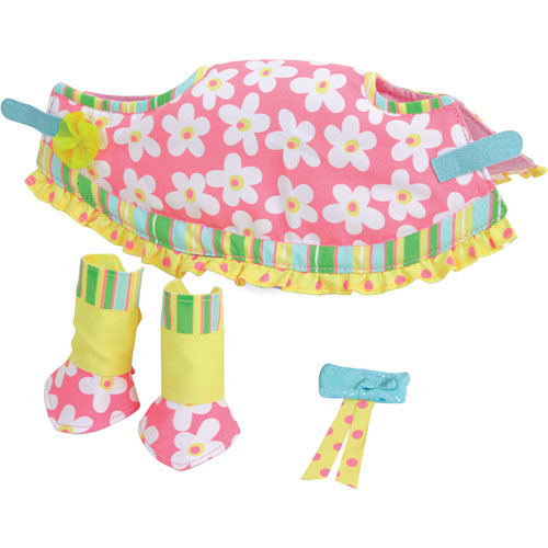 Style up any of the Star Willows horses with this traveling outfit. Bright and soft, it includes a horse blanket, barette and leg warmers.