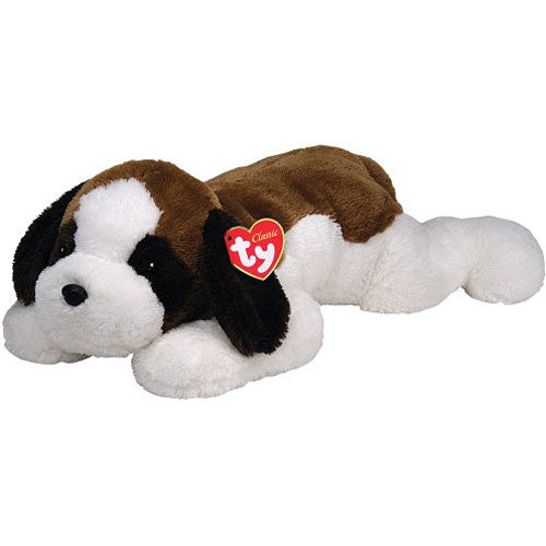 TY Classics Yodels Super Soft Dog St Bernard. This dog is the softest of soft and big enough to snuggle with. This dog is about 32 inch long. Made from super soft material, kids will love it. Ages 3 years and up.