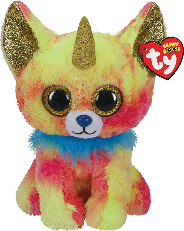 I’m Yips the Chihuahua, that’s the smallest dog breed, but when it comes to looks that’s where I exceed. I have a golden horn upon my head, I think that makes me a unicorn instead. That gold sparkly horn on my head like a peak, is not the only thing that makes me unique. The inside of my ears glitter like gold, I have golden eyes and I’m fun to hold. My adorable nose is blue like the sky. I have a blue scruff, I’m such a cute little guy.