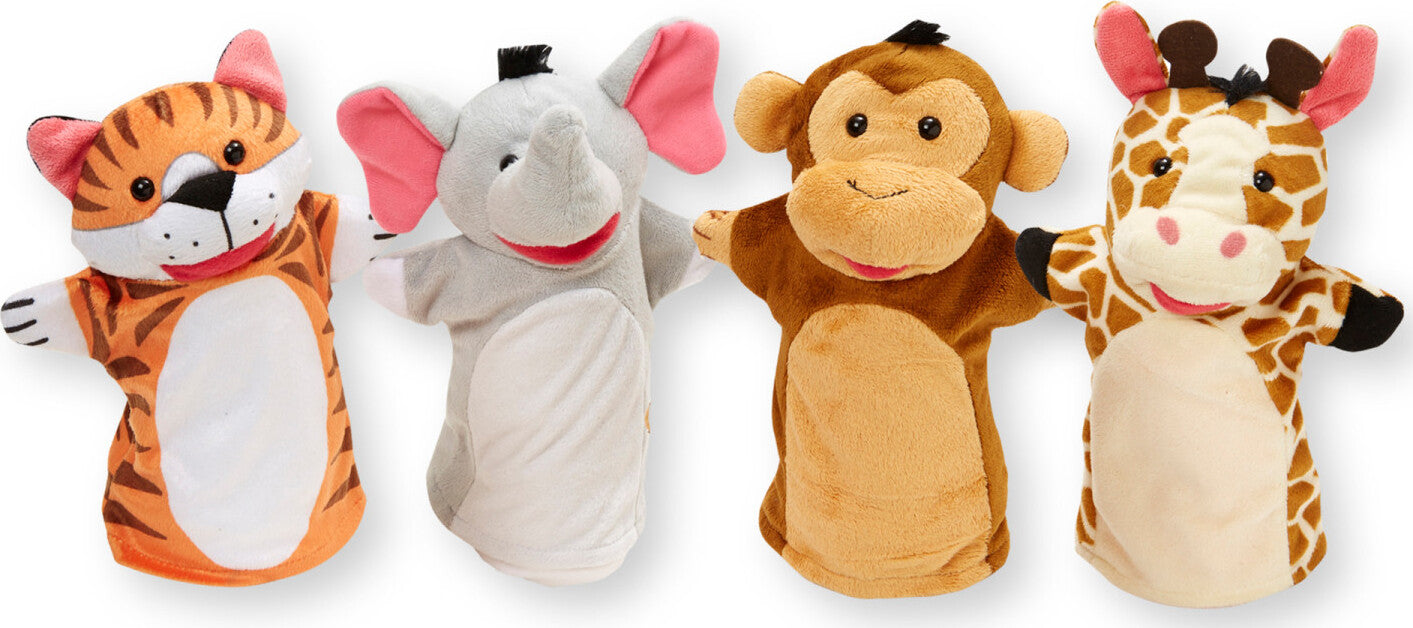 Four adorable hand puppets make up this family-friendly collection-a perfect play set to help children and caregivers to role-play together! Four simple glove puppets in an animal theme make it easy and so much fun to act out scenes, practice new vocabulary, and spend quality time playing together. Great for motor skills and self-confidence, too! Made with brightly patterned, washable fabrics and built to last, these soft and sweet hand puppets are sure to be go-to toys for years to come.