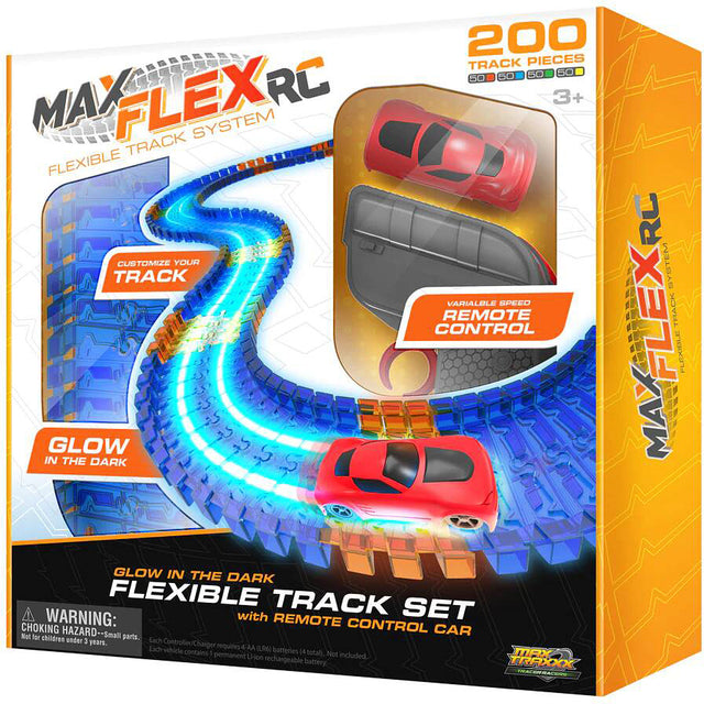 This new addition to the Max Trax racing line allows for kids as young as 3 to enjoy exciting racing in the light and in the dark. Max Flex includes 1 remote control Tracer Racer and over 8 feet (200 pieces) of flexible, multi-colored Glow in the Dark track. Tracer Racers utilize Light Trail Technology as they blaze streaks of light on Skullduggery's patented Glow-in-the-Dark track. Each Tracer Racer beams down purple light rays from its undercarriage onto track specially engineered to emit glow remnants long after the racer has passed. This exciting racing set and a dimly lit room is all that is needed to set the darkness ablaze.