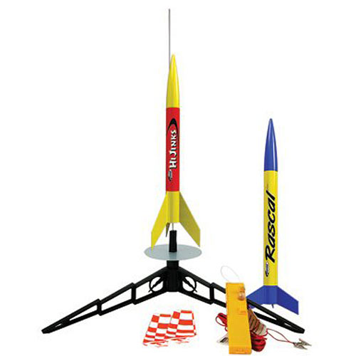 001499 Features: -Recommended engines: A8-3, B4-4, B6-4, C6-5, C6-7. -Ready to fly. -Includes: Fully molded 1 piece fin sets, 12 in. parachute, launch system and detailed instruction. Gender: -Boy. Category: -Early Development Toys. Minimum Age Requirement: -8 Years And Up. Generic Dimensions: -Product weight: 1.37 lbs. Dimensions: Overall Height - Top to Bottom: -14 Inches. Overall Width - Side to Side: -0.98 Inches. Overall Depth - Front to Back: -0.98 Inches. Overall Product Weight: -1.37 Pounds.2 in 1 Rocket Set Streamlined shape and colorful graphics RTF (Ready To Fly) Length: 14 inches (35.6 cm) / Diameter: 0.98 inches (25 mm) Projected Max Altitude: 1,200 ft. (366 m)