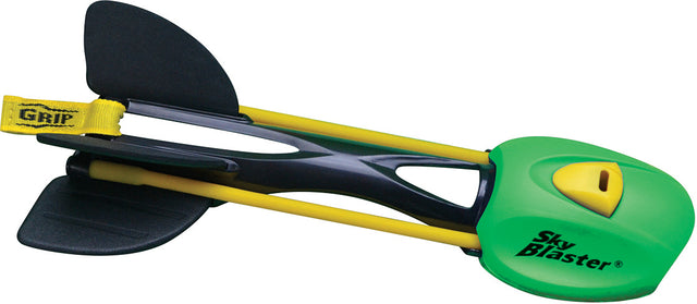 All In One...Rocket and Launcher! Sky Blaster not only soars 120 ft., it whistles as it flies through the air. No batteries needed for this awesome toy. Totally kid powered. Recommended for ages 8 and up.