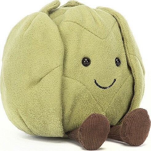 It wouldn't be Christmas dinner without Amuseable Brussels Sprout! This podgy pudding has suedey leafy layers, stitchy folds and kicky cord boots. Sit this sprout on your table or under the tree, or simply snuggle all day long. A cheery, chunky, roly-poly veggie!