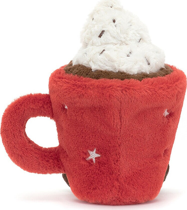 Amuseable Hot Chocolate is a comforting mug of softness. With scarlet fur, embroidered stars and kicking cord boots, as well as fluffy cocoa, a quiff of cream and stitched chocolate sprinkles, this cup is a treat on chilly days!