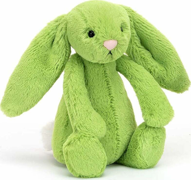 A Bashful Apple Bunny a day keeps the blues away! This funky, fruity friend has the zingiest fur, with chunky paws and waggly ears. A contrast white bobtail and suedey pink nose set off that gorgeous green. A cheery chum to help you remember to munch some nice fresh fruit!