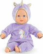 Bébé Calin Unicorn is a 12-inch baby doll that is perfectly sized to be cradled in a young child's arms and is ideal for hugging and cuddling. The doll's soft body is posable like a real baby, it can even suck its thumb, also like a real baby. The doll's head and limbs are made of soft, supple vinyl that is delicately scented with vanilla -- a Corolle signature. With blue sleepy eyes and dressed in a hooded onesie with an embroidered unicorn and "gold" ears and horn, Bébé Calin Unicorn is part of the mon premier poupon Corolle collection of dolls, clothing and accessories for beginning doll play. Ages 18 months and up.