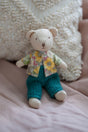 What’s better than cuddling up with a soft bear? How about cuddling up with a soft bear in a flower jacket? Bobbie the bear doll is dressed in a yellow flower jacket and green crocheted pants. The doll can be machine washed for easy care.