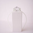 Our Boutique Pretty Petite Crown Headband is beautifully strung with white pearls & a full rhinestone crown centered on the top of the headband.