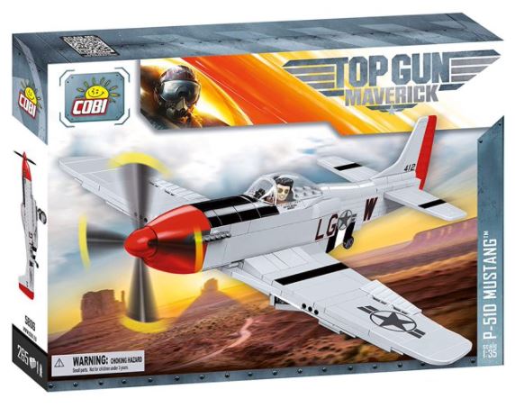 The Mustang P-51D is a building-block model from the film released under the original TOP GUN: Maverick license. The main character of the film, Maverick, prides himself on flying this historic aircraft. In anticipation of the release of the film, you can now build your own Mustang on a model scale of 1:35. The set has been faithfully reproduced from 265 COBI building blocks. In the set you will find high-quality prints and stickers accurately reproducing the original painting of the film aircraft. The model is equipped with rotating propellers, lockable chassis, movable wheels and an opening canopy, where you can place our special figure inspired by the main character of the film. It also includes an elegant block display stand and a plaque containing the name of the aircraft and the film logo. This exclusive licensed kit is certainly a great gift idea for builders of all ages who are movie fans, both of aviation and military movies. It looks perfect in an elegant office or in a teenager's bedroom. The North American P-51 Mustang was an American single-engine fighter during World War II. It was produced at North American Aviation's US plants. It was successfully used in the U.S. Air Force and by its allies during The Second World War and during the Korean War. The very successful design of the 1940s meant the aircraft stayed in service with one or more countries until 1984! Over a period of 46 years over 15,000 Mustangs were manufactured. Today, many of these aircraft are in private hands, including our fictional hero Maverick! Mustangs are still used at air shows and in flight competitions to this day.