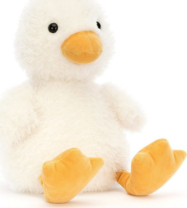 Dory Duck is a happy wee hatchling, looking forward to splashing in the water! Chubby and cheerful, with downy fluff fur and splendidly squishy orange feet and beak, this flap-happy duckling loves quacking, paddling and looking for silver minnows in the water. Can you help find some?