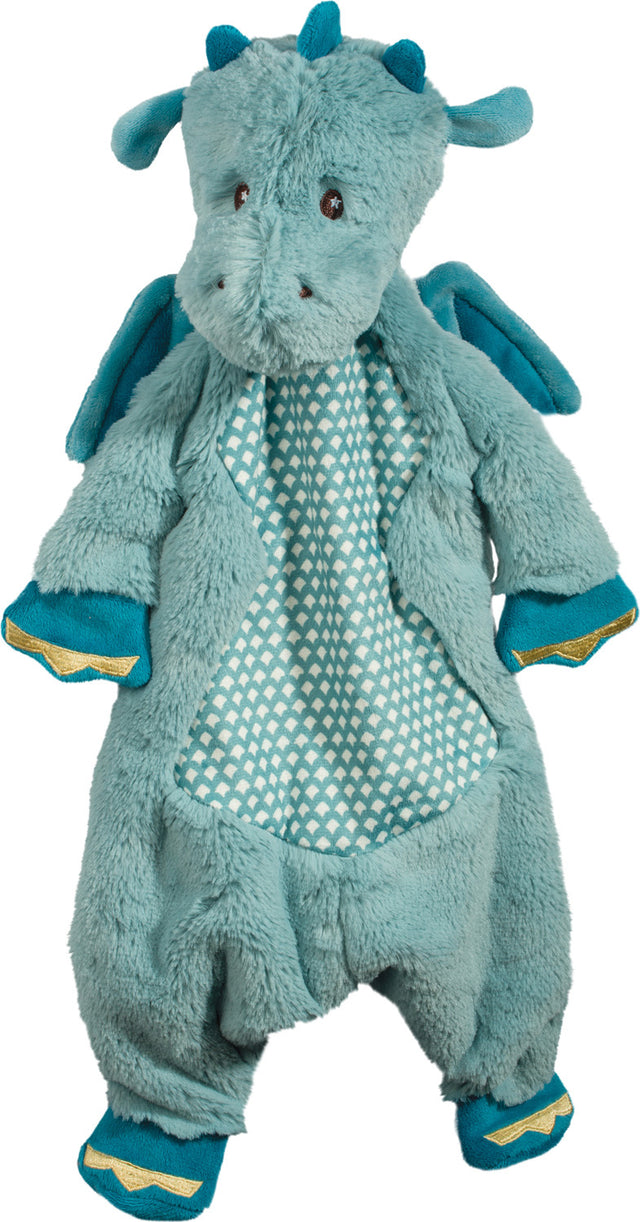 Don't let your little warrior take on a foe without a friendly Dragon companion at their side! Lightweight and versatile, our Little Dragon Sshlumpie is part stuffed animal and part comforting blankie. Easy to pack or carry, he'll always be there to ease away Baby's fears and see them through their battles. Crafted in sumptuous plush with a sophisticated muted blue hue, Little Dragon is designed to soothe and delight. Bright, golden embroidery details his clawed feet, while a pair of soft wings completes his fairytale creature appearance. Never one to shy from a challenge, this endearing Dragon Sshlumpie soft toy will prove himself a brave guardian to your baby. Mix and match other accessories from our Little Dragon collection to make a custom set for yourself or to give as a gift!