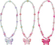 Fancy flutter and fun, this multi faceted iridescent beaded necklace is covered in glitter beads and available in 3 Color variations. The large butterfly charm pendant is multifaceted and brings the whole necklace together.