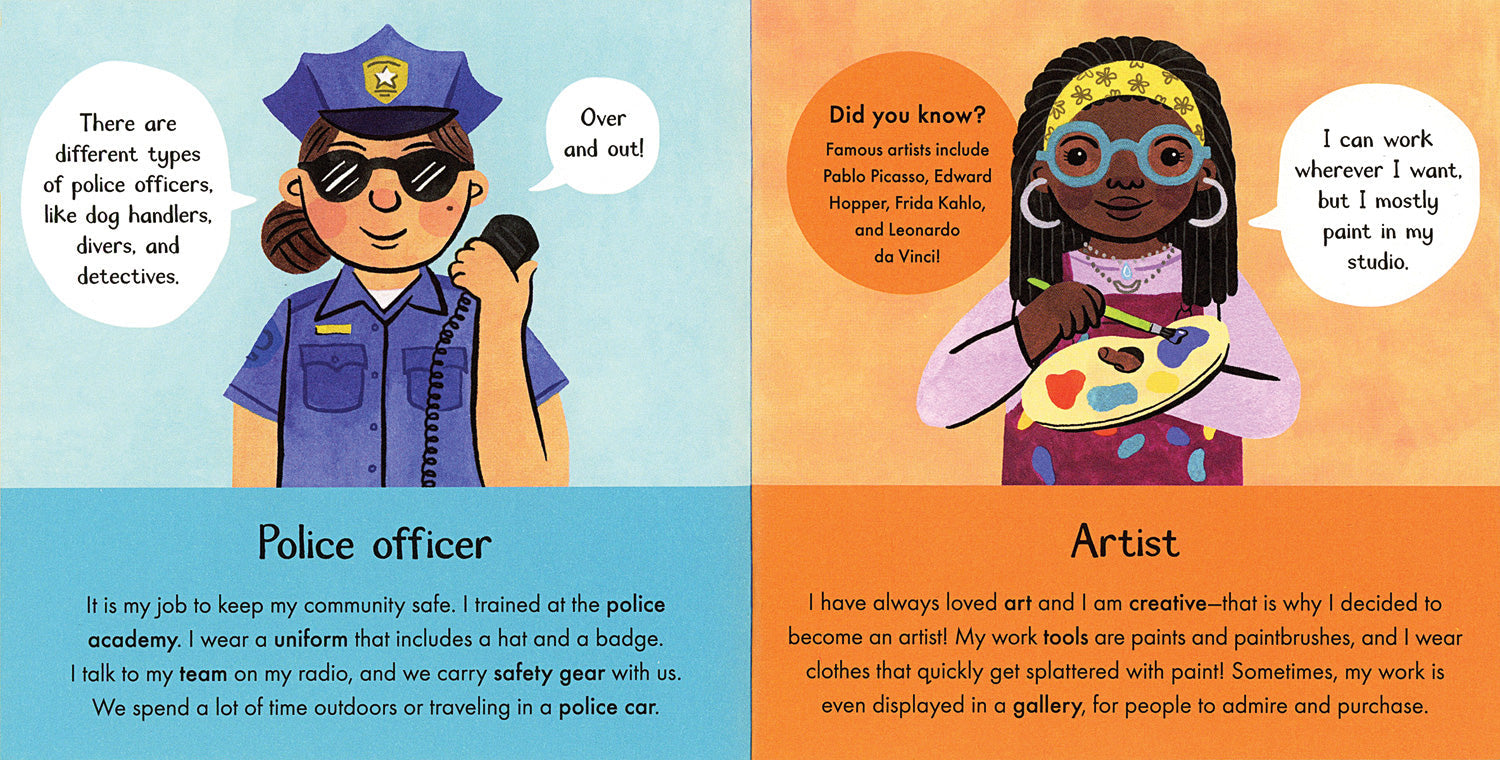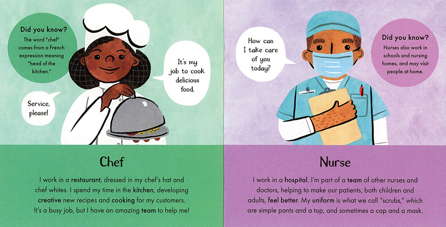 Guess who's who and what they do! Introduce kids ages 3+ to all sorts of grown-up jobs with an exciting guessing game. It includes 2 game boards, 20 character cards, 40 playing tokens, and a 24-page booklet packed with information about different jobs, the special training they might involve, tools of the trade, and more! For 2 players.