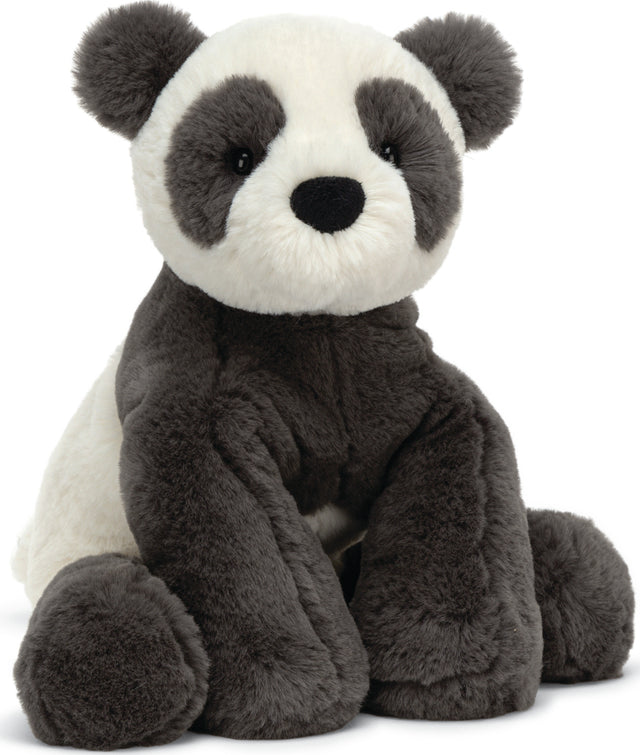 Huggedy Panda, in charcoal and cream, is a poseable, plodsome dreamer. Whether munching on shoots, reading a book or flopping around in the sun, this contemplative creature is always on the cusp of a snooze. Well, wouldn't you be, if you had big, soft, chunky paws to use as a head rest?