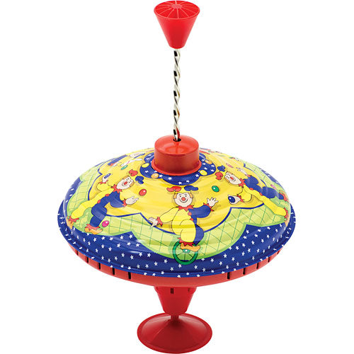 The Jester, that iconic symbol made world famous in the classic Schylling Jack in the Box now has his own Preschool toy line. The new Jester Humming Top is a classic spinning tin top decorated with a juggling Jester.