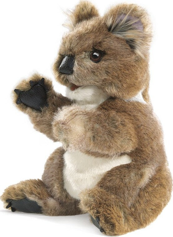 A curious creature from down under, the Folkmanis KOALA puppet is a plump and fluffy cuddle buddy ready to snuggle. Animate head, mouth and forelegs as you imagine climbing trees and eating eucalyptus with your new furry friend.