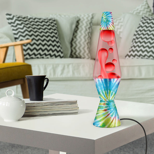 Sure, they're iconic. But more than that, the groovy red wax and hypnotic light have the power to calm, in a fast-spinning world. A funky tie-dye design, almost 15" tall, includes a 25-watt lightbulb and plugs into a power outlet.