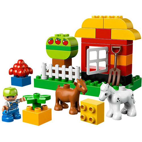 It's a sunny day in the countryside, perfect for growing lots of building fun in My First Garden. While the goat and pony graze in the fields, the boy tends to his vegetables. Pick the ripe apples! Tend the garden with the pitchfork but be sure to build the fence to keep the hungry goat and pony away from the fruit! Includes boy LEGO DUPLO figure.