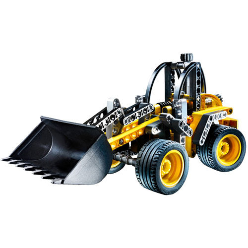 200 pieces. The mighty Wheel Loader is packed with real-life details! Dig in deep and raise the boom-style lift arm to clear the way. Use the control panel on the back of the vehicle to control the loader's rear-axle steering, then tip the bucket to dump your cargo. Includes instructions to rebuild into a Grader.