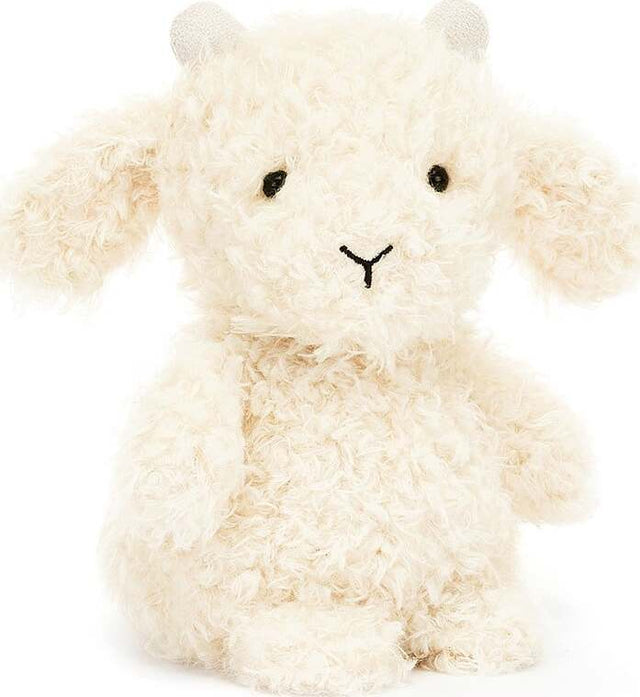 Little Goat may be wee, but this kid will climb any mountain! Adorably curly in cream fur, Little Goat has pebble hooves, suedette horns, a tiny tail and the sweetest fold ears!