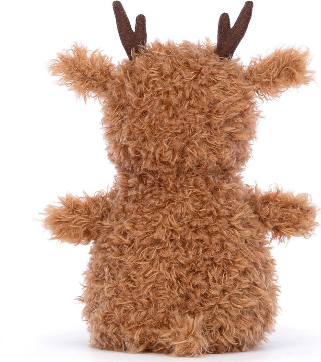 Wonderfully ruffled in toffee and cream, it's Little Reindeer! This sweet pal sits up so proudly, with tufty ears and suedette cocoa antlers. With a beany bottom, button nose and the cutest scruffy hooves, Little Reindeer is a forest treasure.