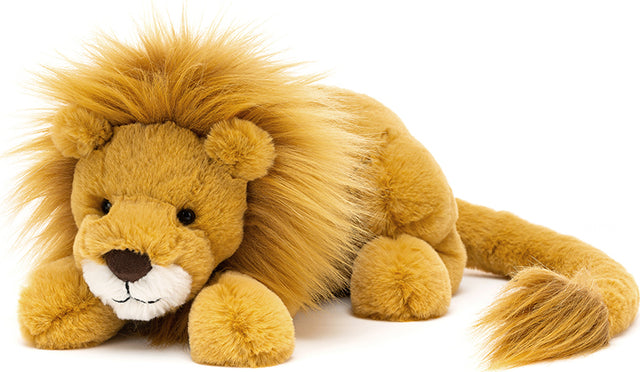 Louie Lion is a glamorous fellow, with a silky mane, soft honey fur and a milk-white muzzle. Loveably lazy, this royal rascal has a long tassel tail and soft, squishy haunches. He's ready to pounce, but he might just snooze instead!