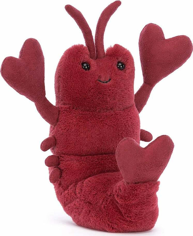 Love-Me Lobster is delightfully dorky and full of crustacean cuddles! This joyful chum has suedey heart claws and a matching tail in plum-purple fur. With squashy segments, waggly legs and perky antennae, there's a whole lot to love. Get you a lobster that greets you like this!
