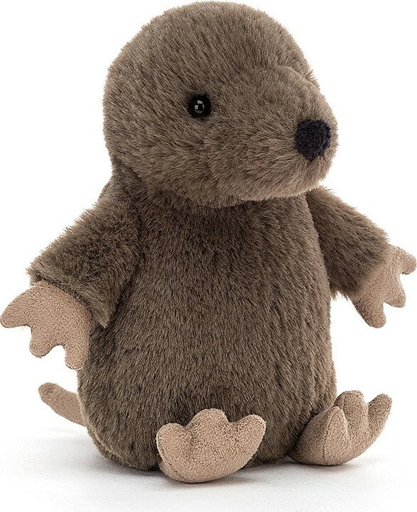 Gentle, genial Nippit Mole is very good at digging tunnels! This chocolate chum has baby-soft fur and mighty suedey praline paws. Popping up shyly with bright black eyes, a perky tail and a nuzzly tum, Nippit Mole is curious to meet you!