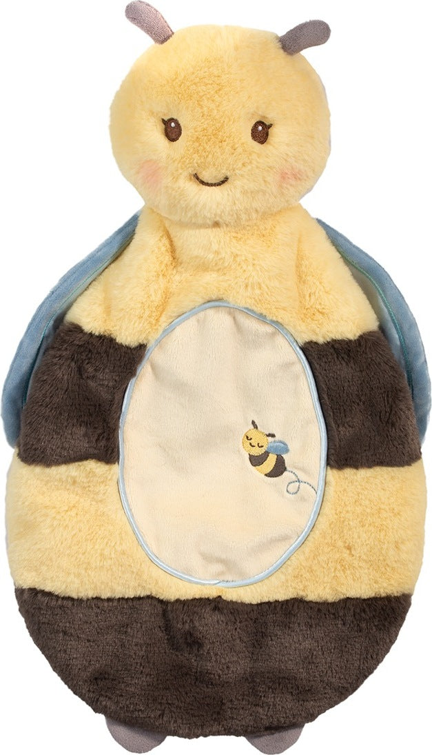 Pollen's facial features and Bumble Bee embellishment are all depicted in baby-safe embroidery. Her rosy airbrushed cheeks and droll smile will win the affections of everyone she meets. Lightweight and soothing, Douglas' happy Bee is the perfect companion for both naptime and playtime. Match this lively Bumble Bee Sshlumpie with your favorite products from Douglas' Baby Cuddle Bugs collection to build a custom set!