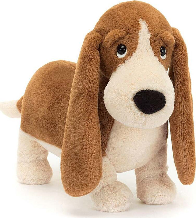 How could anyone resist that face? Randall Basset Hound is so appealing, with big bold eyes and sleepy lids. A gorgeous toffee-apricot softie, with a firm beany tum, bobbly paws and beautifully droopy ears, Randall is a waggy treasure.
