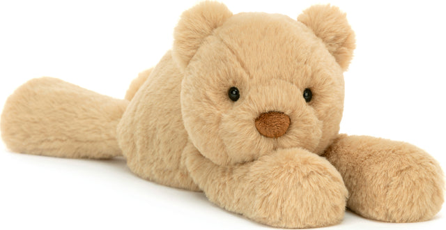 Smudge Bear is ready to snooze. It's no surprise that this teddy bear gives a great hug, with silky soft fluff in shades of honey, and podgy trumpet paws. This peaceful cub is ready to snuggle up.