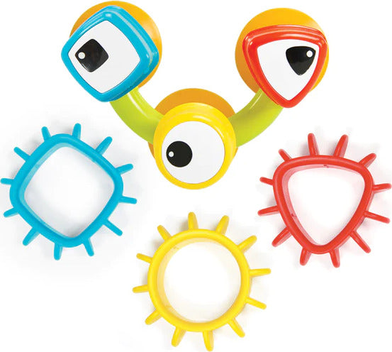 - Show your toddler how to maneuver the large, easy-to-grasp shapes, and then spin the gears – supporting their fine-motor development