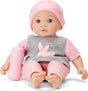 This adorable 14” baby is just the right size for your child to snuggle! The baby has a soft body, a weighted bottom and molded head, legs, and arms so it feels so real to your child! The baby’s gently smiling face has sleepy eyes, facilitating bedtime play. She comes dressed in an adorable bunny tee, polka dot leggings and matching cap with a bottle. Ages 12 mo+.