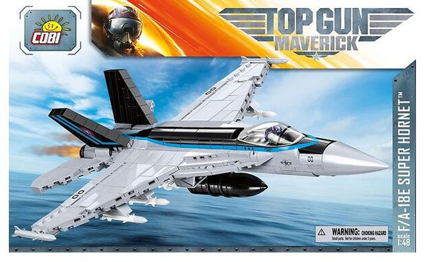 The F/A-18E Super Hornet is a building-block model from the film released under the original TOP GUN: Maverick™ license. Legendary U.S. Navy pilot and instructor Pete "Maverick" Mitchell flies this aircraft with its distinct markings. In anticipation of the release of the film, you can now build your own Super Hornet on a model scale of 1:48. The model has been faithfully created from 570 COBI building blocks. In the set you will find high-quality prints and stickers accurately reproducing the original painting of the film’s aircraft. The model is equipped with a movable canopy and rotating wheels. Under the wings there is a large arsenal of weapons. In the cockpit you can seat the special block-pilot. It also includes an elegant block display stand and a plaque containing the name of the aircraft and the film logo. This exclusive licensed kit is certainly a great gift idea for builders of all ages who are movie fans, both of aviation and military movies. It looks perfect in an elegant office or in a teenager's bedroom.