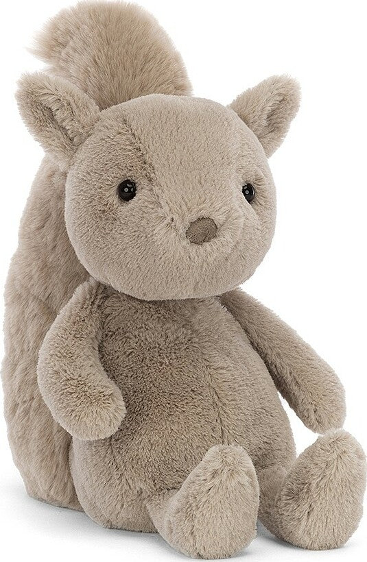 Affable scrambler Willow Squirrel has just put the kettle on. Want some acorn tea? So very soft in latte fur, with a suedey pip nose and huge floofy tail, Willow has such perky leaf ears and a beany bottom for sitting on tree stumps. This little squirrel loves fairy tales - do you have any to share?