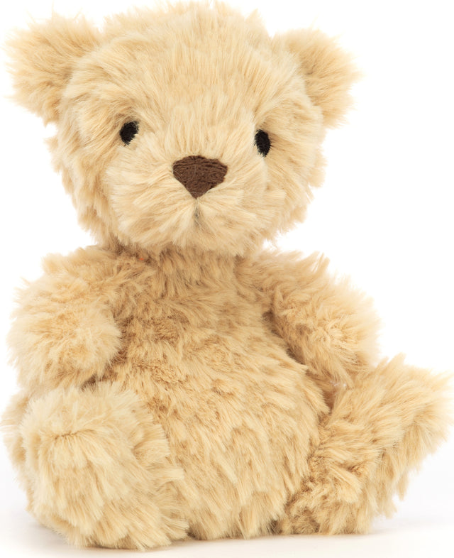 Yummy Bear is pocket perfection with silky, tufted honey fur. This gentle bear has a slumped, relaxed pose, cocoa nose and embroidered eyes. A gorgeous gift for tiny paws.