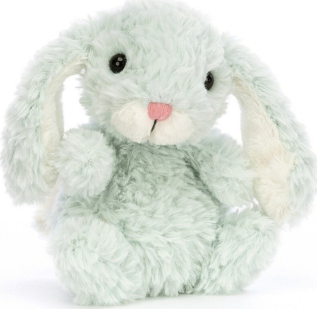 Yummy Bunny Mint is full of curiosity, and so cute you won't want to leave them anywhere! In ruffled, mint-green fur with flopsy, weighted ears and chubby cheeks, this pocket moppet is the perfect pal for tiny people, or anyone who likes a nuzzle from a stitchy pink nose!