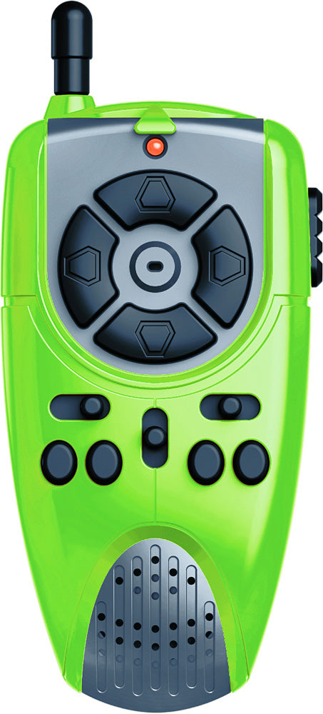 Program this remote-control walkie-talkie bot to talk, move in all directions, disguise your voice, and make hilarious sound effects! It even has a spy mode to listen in on unsuspecting enemy forces, or just unsuspecting siblings! Requires 6 AAA batteries.