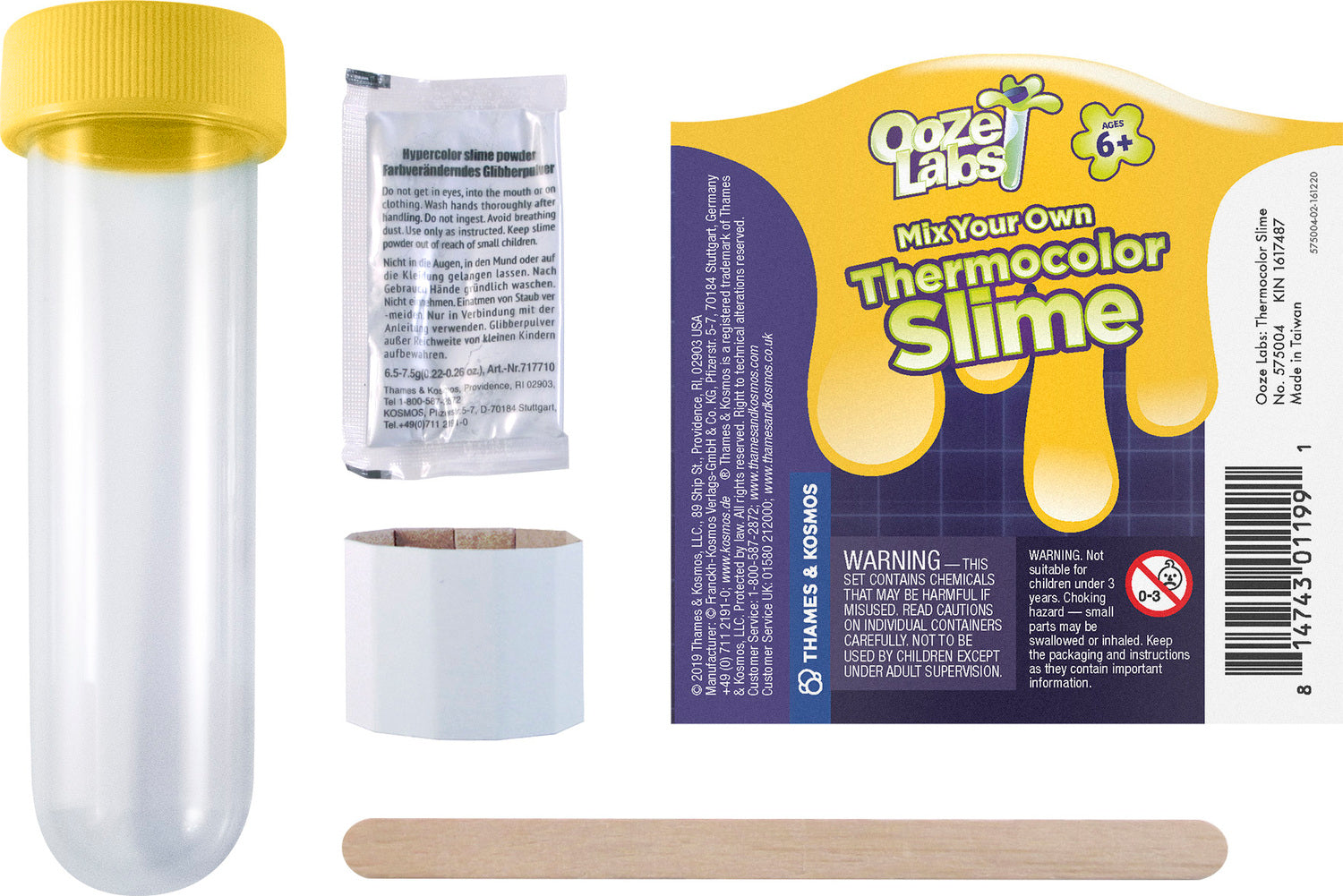 Make your own color-changing slime that changes from green to blue depending on the temperature. Ooze Labs are fun and simple science experiments in big chunky plastic test tubes! Each Ooze Lab tube contains a simple science experiment to create a safe material that is both fun to play with and chemically interesting.