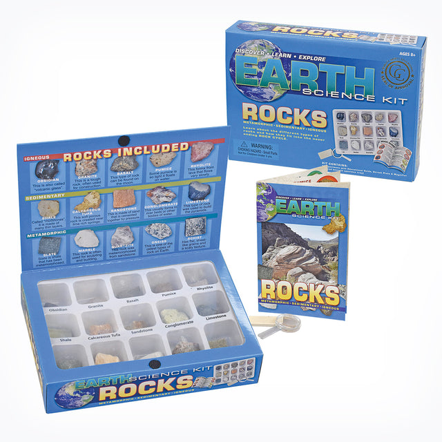 The Earth Science Kits have been updated and improved! Kids can explore the wonders of our geological world. Each kit contains 5 specimens each of igneous, sedimentary and metamorphic rocks. Kits also include magnifier, streak plate, and instructional guide.