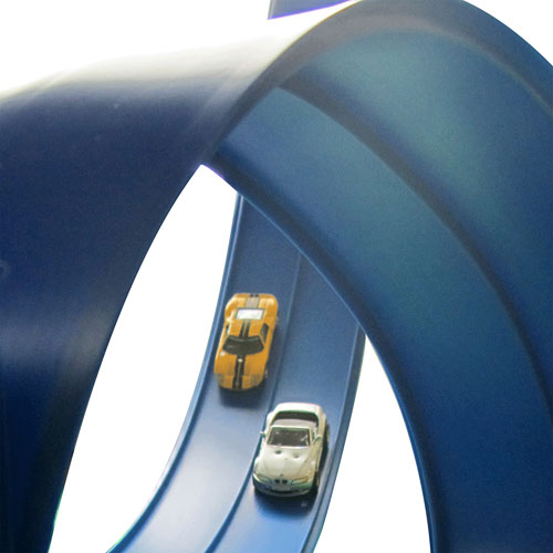 18' Continuous coil of flexible 2 lane race track in a redesigned reusable storage and transport box. Includes adaptable hanger system allowing quick easy setup almost anywhere indoors or outdoors. Plenty of track to set up as many configurations as you can dream up. You can do more with one 18' length of BluTrack than you can with several sets of other traditional systems