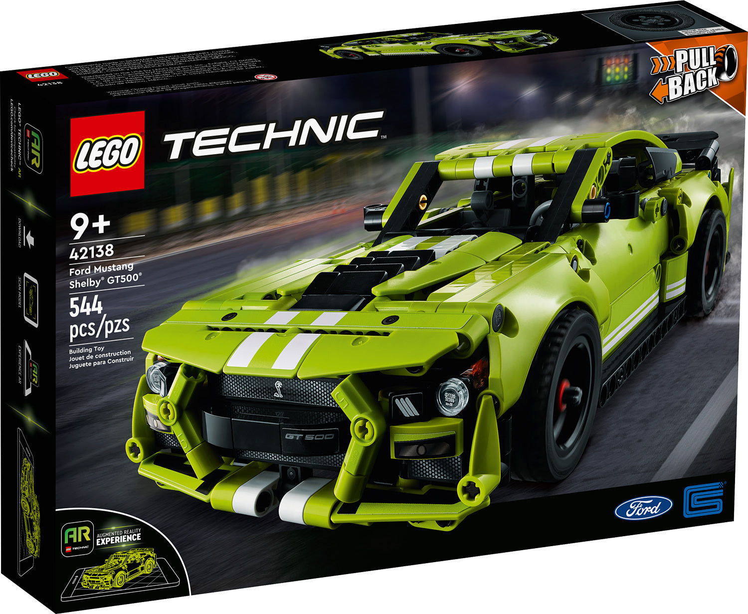 Let kids aged 9 and up build their own drag race car toy with this thrilling LEGO® Technic™ Ford Mustang Shelby® GT500® (42138) set. The immersive build gives kids a great introduction to engineering – but that's just the start! Using the 2 pull-back motors, kids can send the toy car racing. Use the AR app to take the play experience to the next level with a host of exciting, augmented reality features.