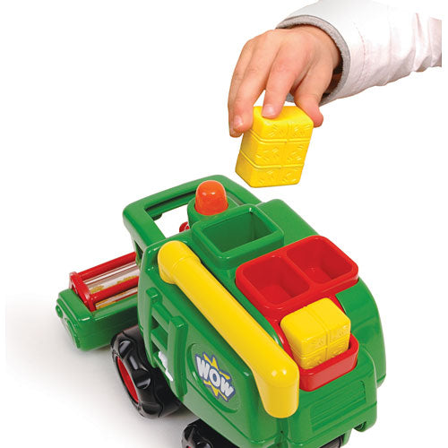 Harvey is an amazing green machine and has lots of functions to discover. He's friction powered with a realistic engine sound. Children can feed in the plastic bales of hay & watch them drop out the back as Harvey moves along, while the grains rattle around in his rotating thresher. The grain spout swivels out and the farmer figure is removable for hours of imaginative play.